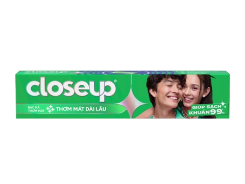 Kem đánh răng Closeup là nhãn hiệu kem đánh răng được nhiều người tin dùng nhất trên thị trường. Kem đánh răng Closeup bạc hà the mát 180g chứa các hạt siêu mịn, nhẹ nhàng làm sạch các vết bẩn quanh răng và loại bỏ mảng bám, cho răng trắng sáng lên trông thấy.