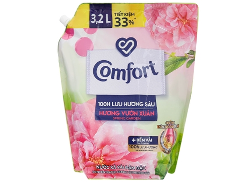 Nước xả vải Comfort lưu hương vườn xuân túi 1.8 lít với khả năng lưu hương sâu lên đến 100 giờ. Nước xả Comfort Vườn Xuân là dòng nước xả vải đậm đặc với công thức chăm sóc chuyên sâu Ultra Care giúp quần áo luôn tươi màu như mới.